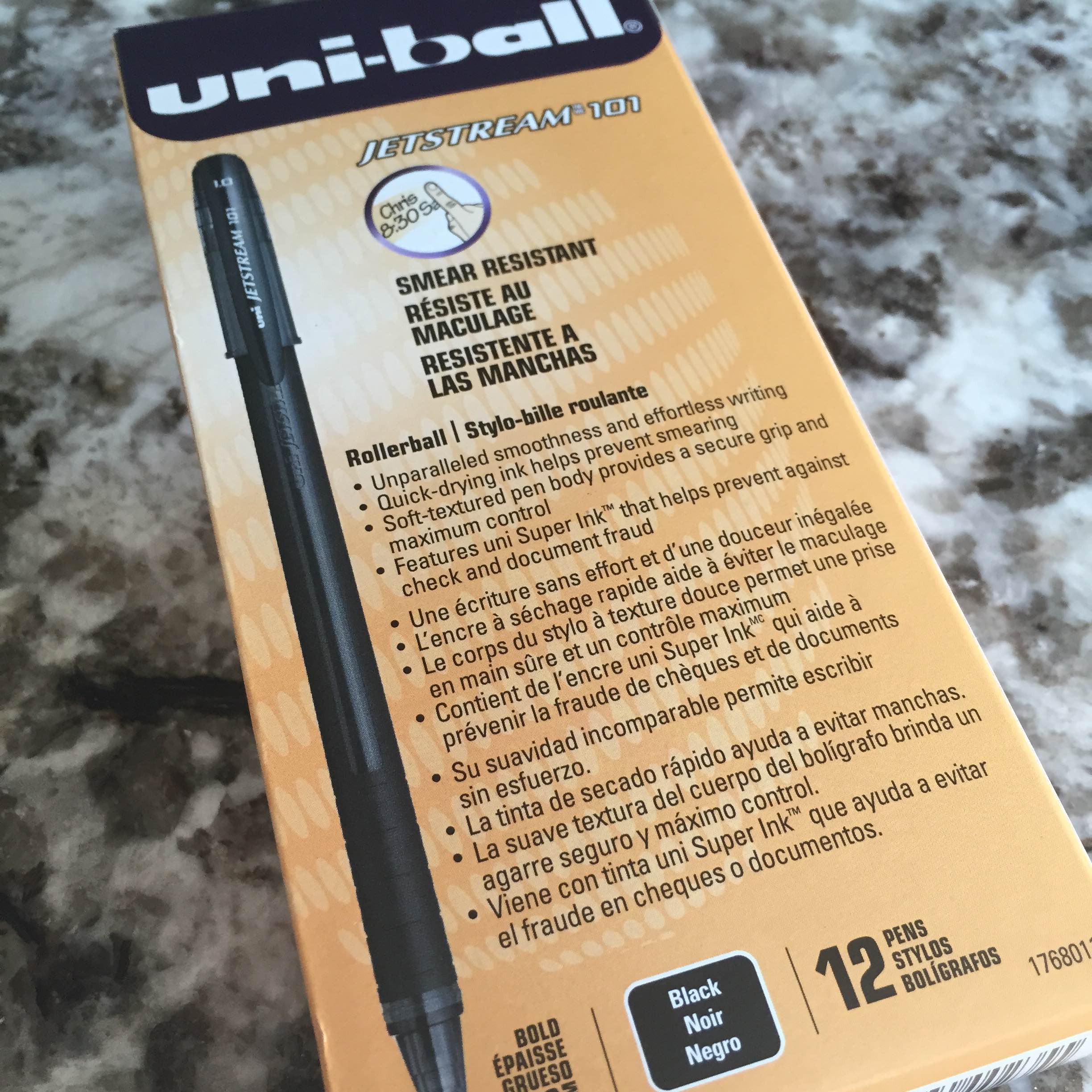 Also, I’m not alone in my love for uni-ball’s Jetstream. I discovered numerous reviewers who lauded the pen for its performance, affordability and ease of use to purchase (re: they’re available basically everywhere). The pen also made it on nearly every top-pen list I found. I’d recommend this review and this blog for those who want more details about the pen and pens in general.
